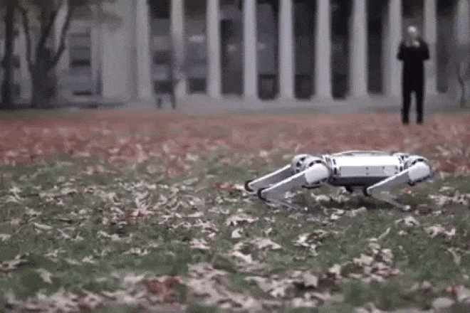 Com tamanho mais compacto que o Cheetah 3, o Mini Cheetah pesa apenas 9 kgs e tem uma velocidade máxima de 9 km/h. E este avanço mostra-nos o quanto nos temos distanciado dos tempos em que os robots eram sinónimos de máquinas desajeitadas que mal conseguiam dar passos em frente em terreno plano, quanto mais andar em terreno irregular ou dar salto. Consegue até movimentar-se em qualquer direcção, e até ir fazendo rotações enquanto mantém o movimento sempre numa mesma direcção.
