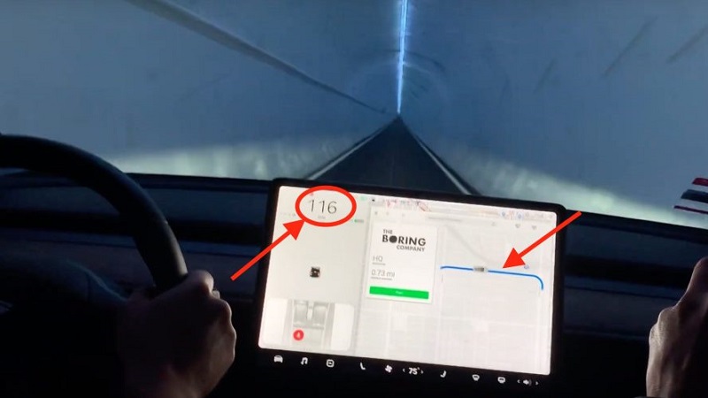 Depois dos testes feitos anteriormente, desta vez temos um túnel com aspecto finalizado e devidamente asfaltado, permitindo uma viagem bastante suave mesmo quando percorrido a quase 190 km/h. Curiosamente, para o fazer a esta velocidade tem que se escolher o modo de condução manual, já que o modo 100% automático está limitado a 145 km/h – embora o objectivo seja aumentá-lo para os 200 km/h.