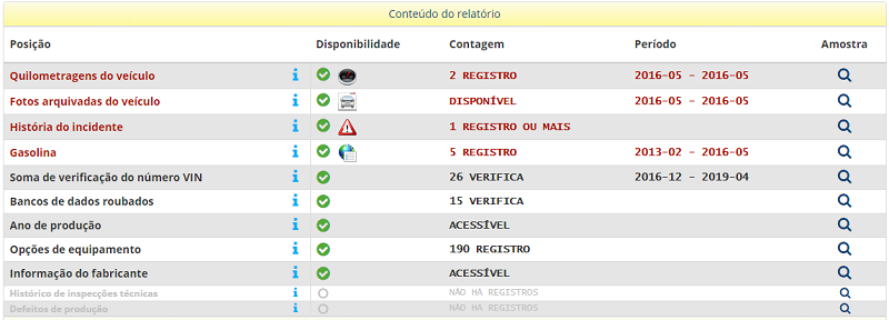 Com o número VIN no portal VIN-Info.com, pode rastrear todo o histórico do veículo. Ao introduzir este número no local adequado, irá saber que informação está disponível sobre o veículo em que está interessado, mesmo antes de comprar o relatório! Por exemplo, podemos descobrir que o veículo tem um histórico de danos ou descobrir fotografias anteriores do veículo.