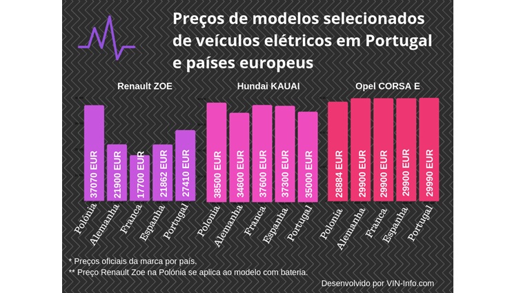 Os especialistas da VIN-Info.com – um portal onde poderá conhecer o histórico de um veículo ao introduzir apenas o número VIN, comparou preços de veículos eléctricos em Portugal e noutros países da UE.