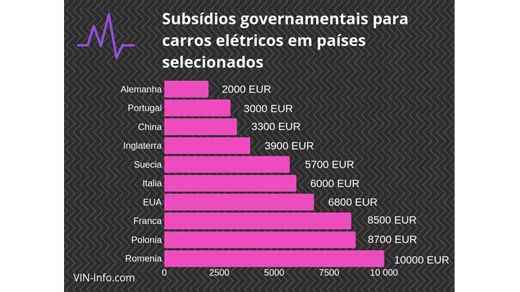 No que respeita a subsídios para apoio na compra de Veículos Eléctricos, Portugal está quase na última posição com 3.000€. Os países que mais apoiam os seus cidadãos são a Roménia, com 10.000€, a Polónia com um montante de 8.700€ e a França com 8.500€. Estes são os valores máximos que podem ser obtidos nestes países. Na Polónia, o sistema de subsídios, entrará em vigor brevemente.