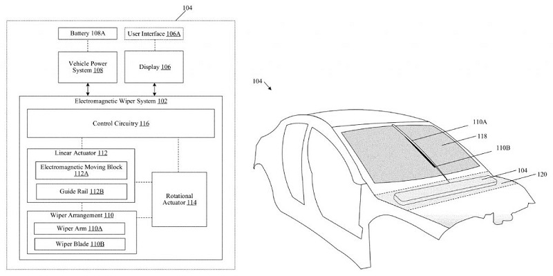 A Tesla fez o pedido de uma patente para limpa pára-brisas electromagnético que dispensaria a complexidade mecânica das escovas normais, e no processo também os tornaria bastante mais eficientes em termos energéticos e a nível de manutenção, com menos peças móveis. O sistema recorreria a um actuador electromagnético linear, que faria a escova atravessar horizontalmente o pára-brisas, cobrindo toda a área, em vez dos habituais semi-círculos dos mecanismos tradicionais (ou dos sistemas mais complexos, como os utilizados nalguns Mercedes, para se apanhar mais área).