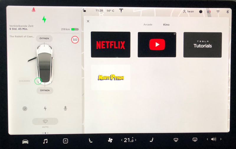 Aliás, os Monty Python têm tido destaque nos Tesla, havendo um easter egg caso se dê ao carro o nome de “The Rabbit of Caerbannog” (do filme Monty Python and the Holy Grail) e que faz surgir um canal dedicado aos Monty Python no Tesla Theater – a secção dedicada aos serviços de vídeo – que redirecciona para vídeos dos Monty Python no YouTube.