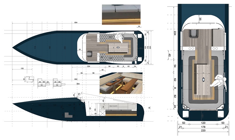 O casco com linhas dinâmicas e design intemporal do construtor italiano, Tullio Abbate, manteve-se, mas não tem qualquer motor a bordo ou fora de bordo. A propulsão e viragem são asseguradas por unidades direccionais submersas. Este é um desenvolvimento técnico que confere ao barco um perfil mais elegante e permite optimizar a ergonomia do cockpit para facilitar a condução e assegurar o máximo conforto aos passageiros, enquanto o barco desliza suave e silenciosamente pelas águas. Os passageiros podem desfrutar de um cruzeiro de duas horas depois de duas a três horas de carregamento das baterias.