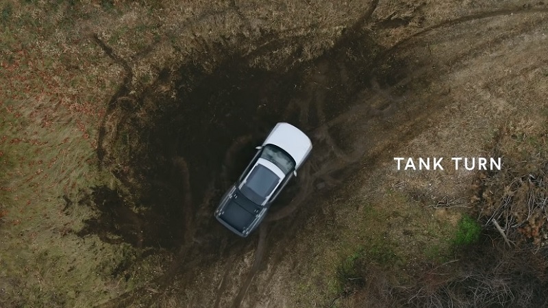 Mas, mais curioso ainda, é que em situações de pouca aderência, como com lama ou neve, é possível fazer o mesmo tipo de manobra que normalmente se associa aos tanques de guerra: colocar o veículo a rodar sobre si mesmo, fazendo as rodas de um dos lados girar num sentido, e as do outro lado a girar no outro.