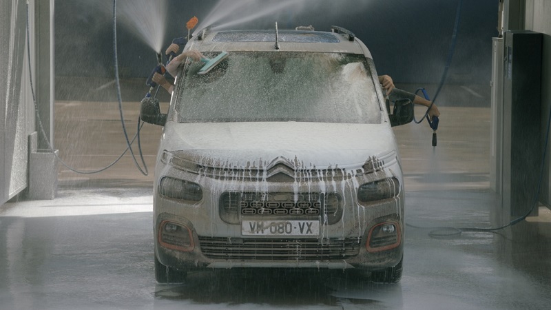 - Lavagem automóvel: uma família que manobra os jactos de lavagem através das janelas de seu Berlingo ou C3.