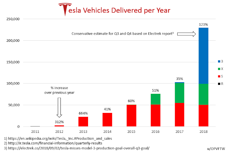 Este marco anunciado por Elon Musk torna-se ainda mais relevante quando nos lembramos que até 2015, a Tesla comercializava apenas o seu Model S e o volume de vendas total andaria pelas 100 mil unidades. Ou seja, em apenas cinco anos a Tesla conseguiu um aumento de 10x (1000%), e onde isso se deve quase exclusivamente ao lançamento do seu Model 3.