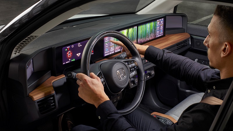 O Honda e integra várias tecnologias de ponta e funções inteligentes de conectividade avançada para que os ocupantes se mantenham ligados à vida do dia-a-dia. A sua tecnologia interactiva, representada pela substituição dos tradicionais retrovisores por câmaras de alta definição, oferecendo uma visão 360º, e pelo seu painel digital interactivo com 5 ecrãs, fazem com que o Honda e seja um modelo com uma abordagem centrada no ser humano e na visão actual que este tem sobre a mobilidade, ou seja, como um serviço e não como um produto.