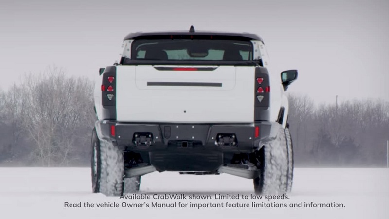 A utilização de quatro rodas direccionais não é novidade no sector automóvel, mas neste caso parece que a amplitude de viragem no eixo traseiro é bastante superior aos sistemas que chegaram ao mercado até ao momento, e permite que este novo Hummer tenha mais opções sobre como manobrar terrenos difíceis.