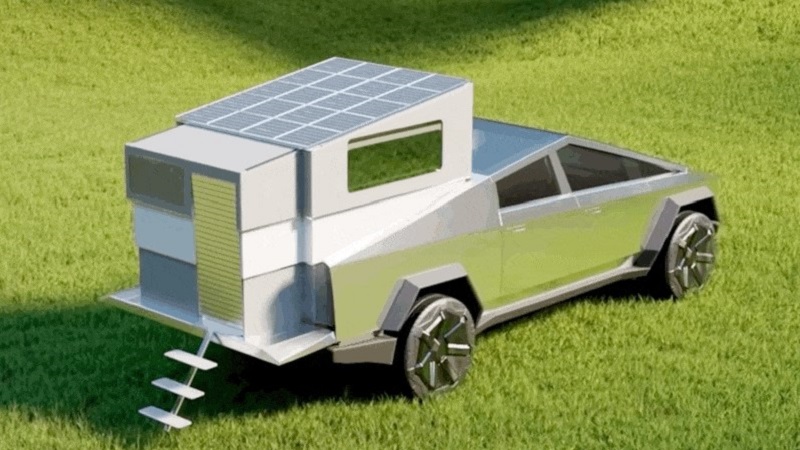 Já era de esperar que surgissem variantes do Cybertruck transformadas em auto-caravanas, mas o que se destaca neste CyberLandr é o facto de toda a casa poder ser compactada de forma a caber na caixa de carga do Cybertruck sem transformar o seu aspecto. Quando for altura de dar uso ao espaço, o mesmo expande-se em estilo Transformer, proporcionando uma sala / quarto, cozinha, casa de banho com duche e sanita, janelas com vidro que se pode tornar opaco ao toque de um botão, e até escadas retrácteis para fácil acesso. Tem ainda painéis solares para evitar gastar demasiado a bateria do Cybertruck (mas não sendo especificado se poderão ser usados para recarregar as baterias dele).