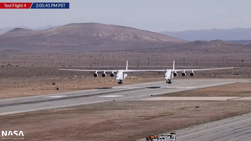 O Stratolaunch Roc, o maior avião do mundo, completou o seu quatro voo de testes com sucesso.