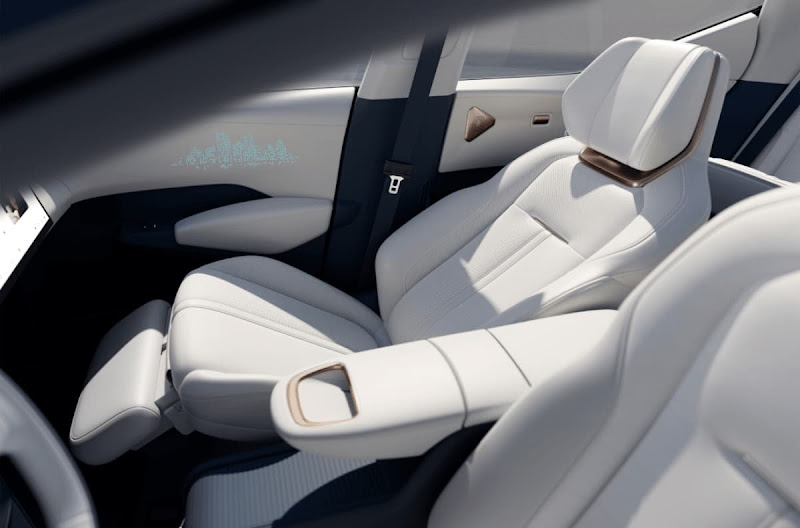 No interior as boas notícias continuam, já que além de manter um painel de instrumentos mais tradicional, que apelará a quem não aprecia o minimalismo dos Tesla, temos até mordomias como um ecrã central de 14,6″ que pode deslizar para o lado do passageiro, tecto panorâmico em vidro que ajuda a criar um ambiente mais espaçoso, bancos reclináveis, e até bancos traseiros que podem levantar (como nas cadeiras de cinema) para proporcionar maior volume livre interior se for necessário. Temos ainda algumas coisas menos comuns, como sistema de entrada através de sensor de impressões digitais.
