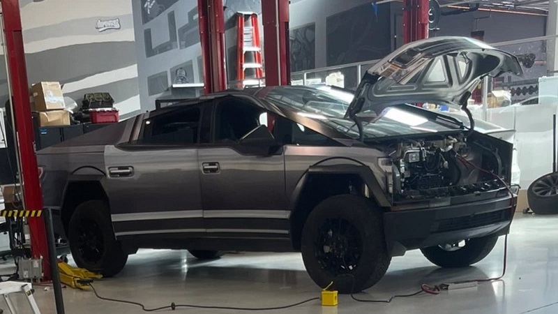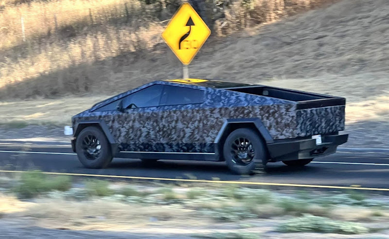 A Tesla tem wrap do Cybertruck camuflado como Ford F-150, e que parece revelar que não terá mala frontal.