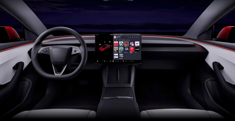 No interior, passa a haver um ecrã para os lugares traseiros, colocado ao centro. Menos consensual será a transição para o sistema estreado nos Model S e X, que remove a haste para os piscas (feitos via botões touch no volante) e de selecção da mudança (seleccionada através do touchscreen). Também se passa a ter iluminação configurável, 17 alto-falantes (em vez de 14), conectividade WiFi e Bluetooth melhorada, bancos ventilados e aquecidos, e uma mala de maiores dimensões cuja capacidade aumenta dos 561 l para os 594 l. A Tesla também diz que o habitáculo será mais silencioso.