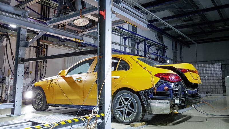 Em conjunto com o Fraunhofer-Institute for High-Speed Dynamics, o EMI (Ernst Mach Institute) em Freiburgo, a Mercedes-Benz realizou o primeiro teste de colisão do mundo com raio X num veículo real. A bordo estava o manequim SID II do lado esquerdo, virado para o impacto. Trata-se de um provete com anatomia feminina, especialmente concebido para ensaios de colisão lateral.