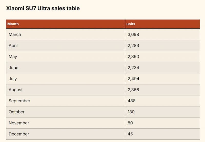 As vendas do ultra-desportivo Xiaomi SU7 Ultra caíram a pique nos últimos meses de 2025, com a Xiaomi a vender apenas 45 unidades em Dezembro, depois de vários meses a vender mais de 2.000 unidades por mês. Trata-se de uma quebra abrupta para um automóvel que tinha conquistado enorme atenção graças às suas prestações extremas e recordes em pista.