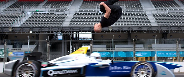 A Formula E tem vindo, aos poucos, a conquistar adeptos… e agora temos um que dá pulos de alegria, sobre um Formula E a 100km/h. Damien Walters é um duplo que já participou em filmes como Captain America e Skyfall,…