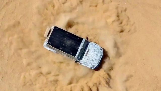 A Mercedes mostra as vantagens dos quatro motores eléctricos num EQG para girar sem sair do sítio.
