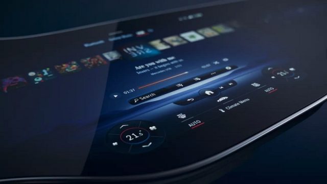 Com os ecrãs a terem papel cada vez mais importante nos carros, a Mercedes aposta num mega-ecrã de 56″ que atravessa o carro de um lado ao outro e a que chama Hyperscreen.