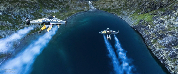 Os voos de pessoas com asas a jacto já são suficientemente impressionantes, mas agora tornam-se ainda mais fascinantes, com uma demonstração em que o piloto parte de terra, depois de pairar no ar por alguns momentos.